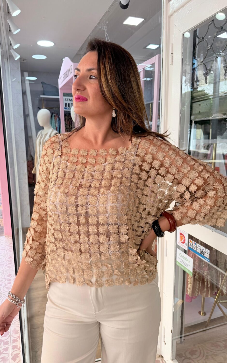 Descubre la pieza estrella de la temporada. El Blusón Mosaico es una prenda de diseño artístico que juega con las transparencias y el relieve para crear un look etéreo, femenino y absolutamente original. Es esa prenda especial que transforma un outfit básico en uno extraordinario.