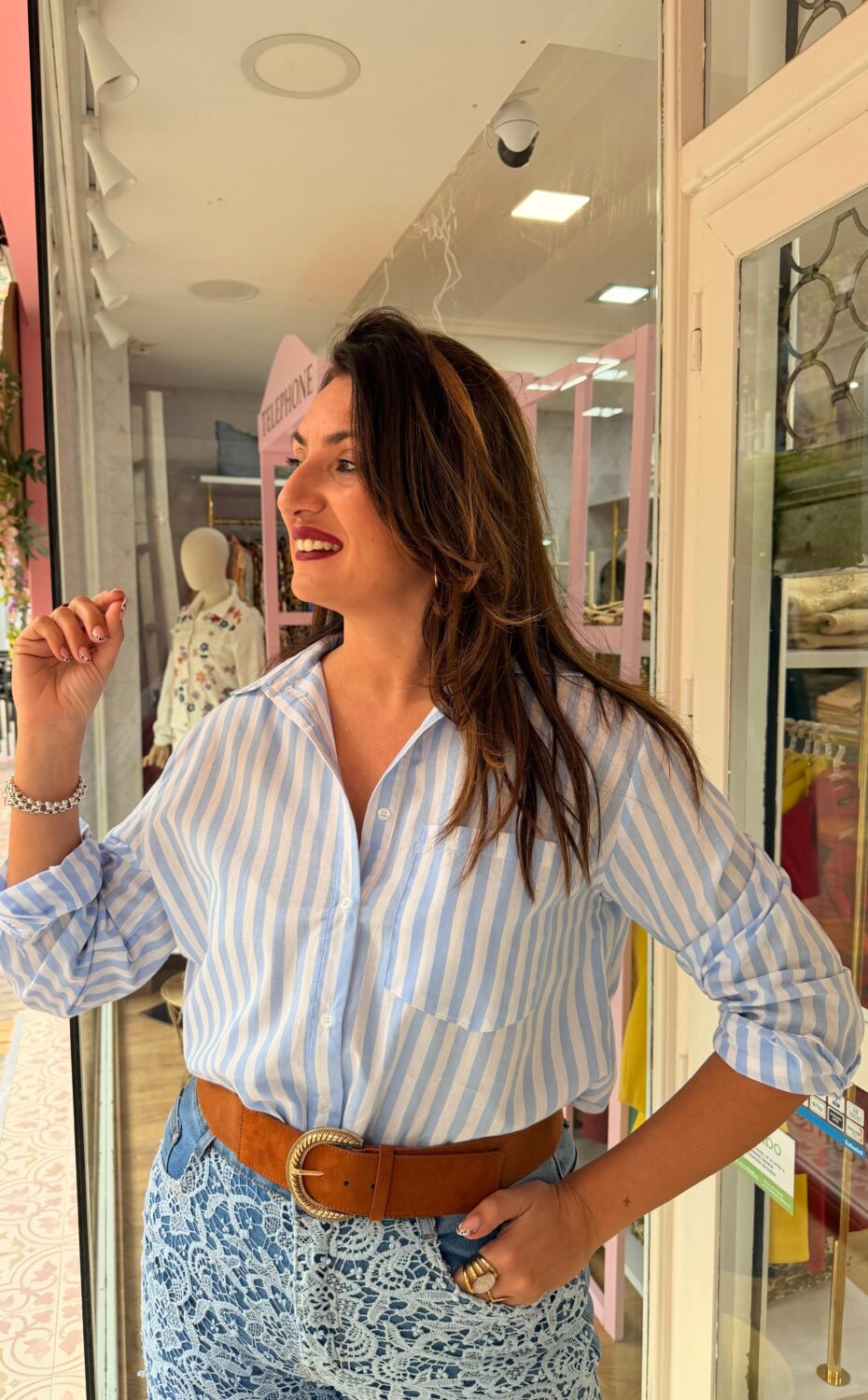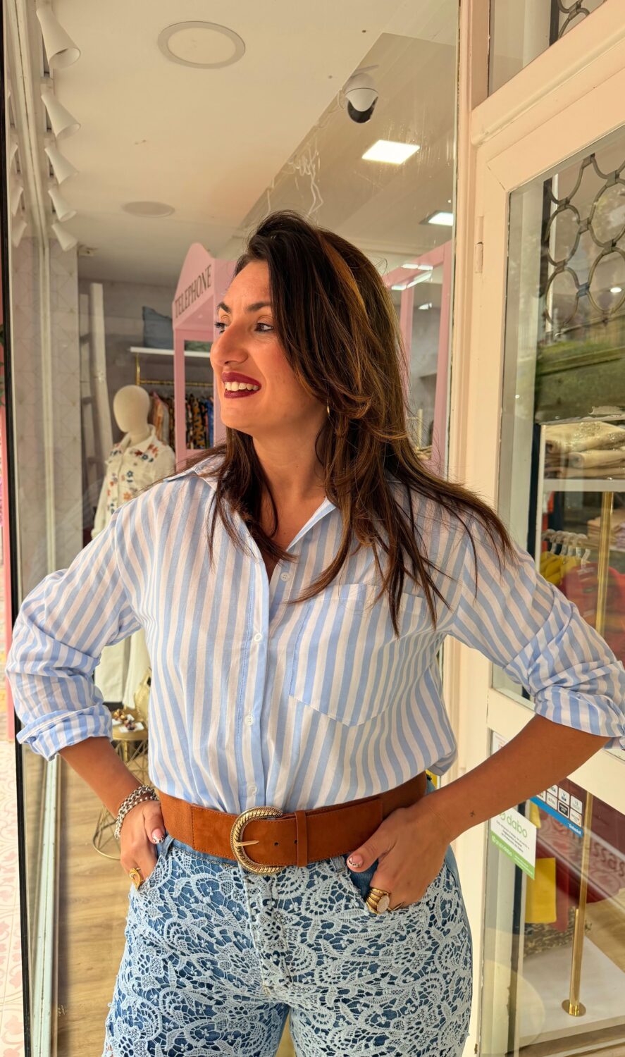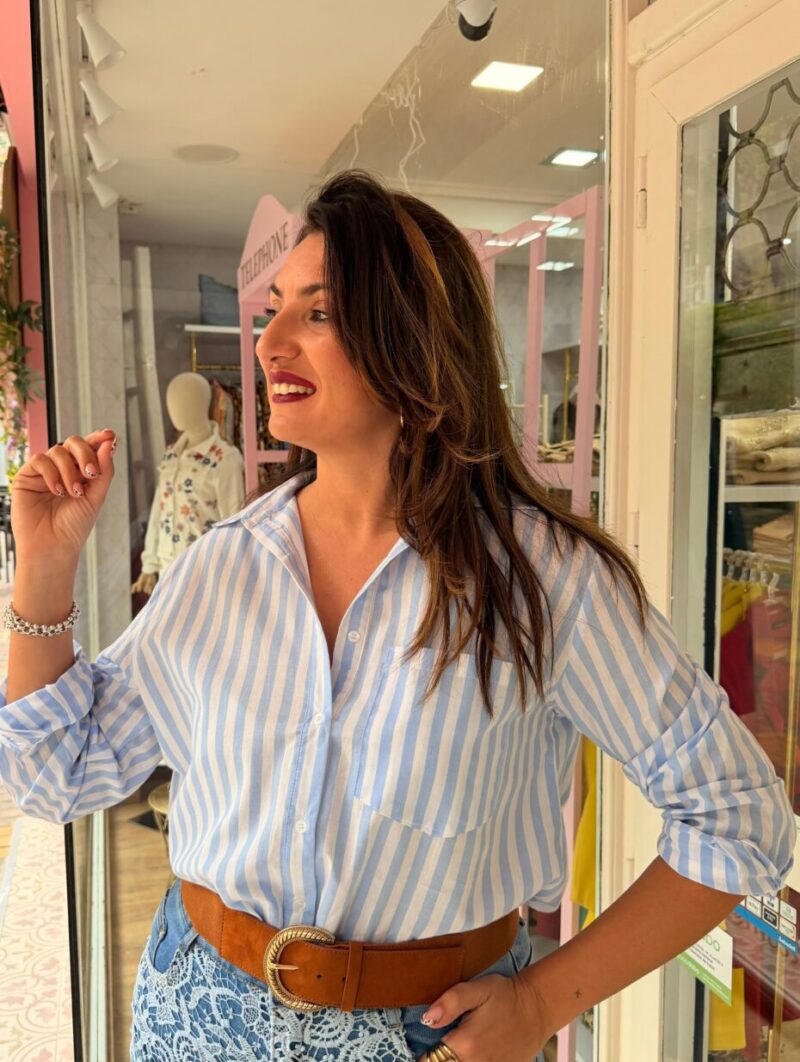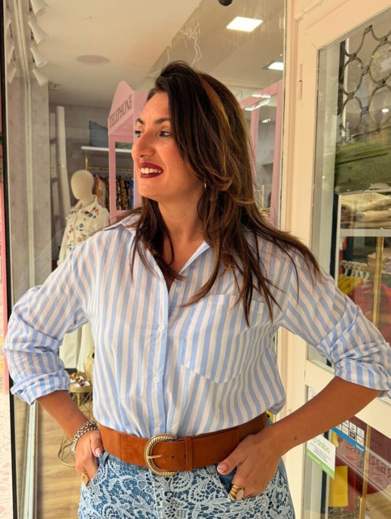 Añade una dosis de luz y energía a tu vestidor con nuestra camisa de rayas diplomáticas en un vibrante tono azul sobre fondo blanco que redefine el estilo clásico con un aire totalmente renovado y estival. Esta prenda destaca por su diseño de corte fluido y holgado que garantiza una caída impecable además de una comodidad total gracias a su tejido ligero y transpirable ideal para las temperaturas más cálidas. Presenta un cierre frontal de botones clásicos y un práctico bolsillo en el pecho que refuerza su carácter versátil permitiendo llevarla tanto cerrada para un look más formal como abierta sobre un top para un estilo más relajado. Los puños permiten jugar con el largo de las mangas para conseguir ese toque desenfadado tan buscado mientras que su largo permite lucirla por dentro o por fuera de tus pantalones favoritos. Es la compañera inseparable de prendas blancas para crear conjuntos llenos de frescura y luz que no pasarán desapercibidos en ninguna ocasión.