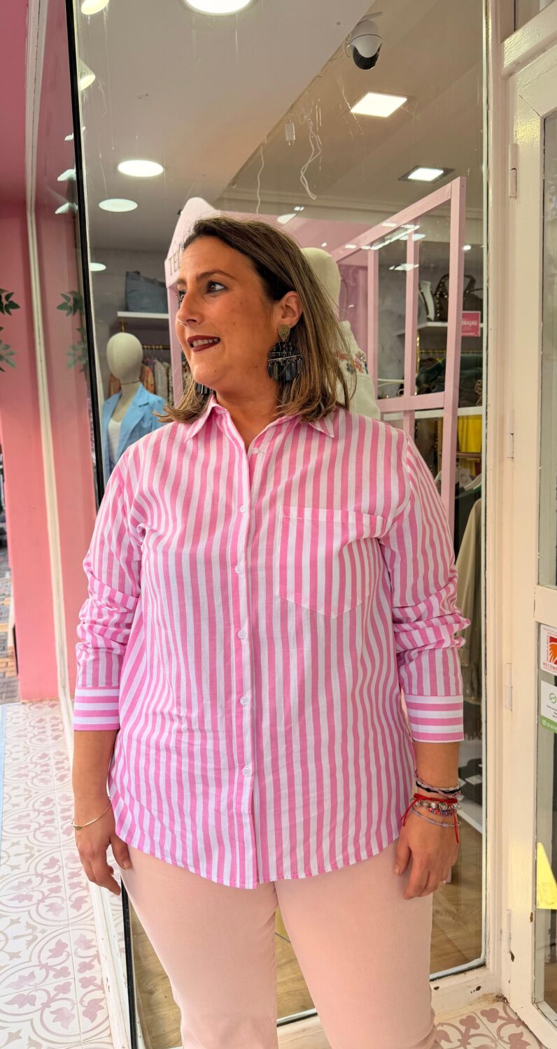 Añade una dosis de luz y energía a tu vestidor con nuestra camisa de rayas diplomáticas en un vibrante tono rosa sobre fondo blanco que redefine el estilo clásico con un aire totalmente renovado y estival. Esta prenda destaca por su diseño de corte fluido y holgado que garantiza una caída impecable además de una comodidad total gracias a su tejido ligero y transpirable ideal para las temperaturas más cálidas. Presenta un cierre frontal de botones clásicos y un práctico bolsillo en el pecho que refuerza su carácter versátil permitiendo llevarla tanto cerrada para un look más formal como abierta sobre un top para un estilo más relajado. Los puños permiten jugar con el largo de las mangas para conseguir ese toque desenfadado tan buscado mientras que su largo permite lucirla por dentro o por fuera de tus pantalones favoritos. Es la compañera inseparable de prendas blancas para crear conjuntos llenos de frescura y luz que no pasarán desapercibidos en ninguna ocasión.