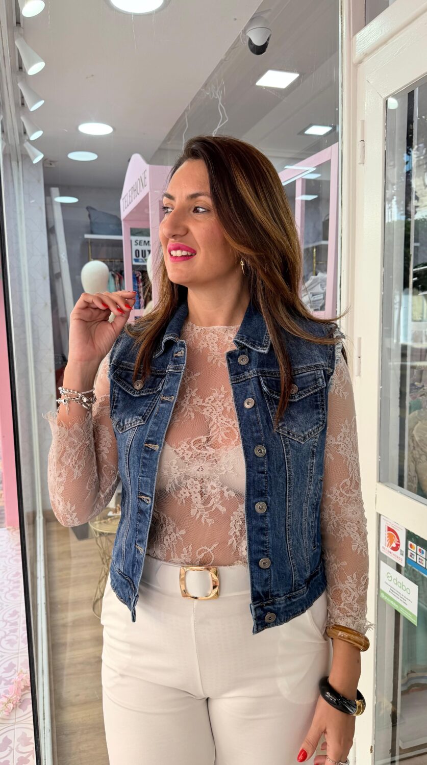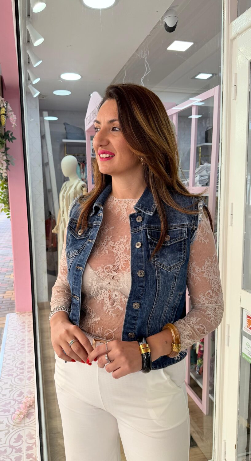 ¡Hazte con el chaleco vaquero definitivo para tus looks más especiales! Esta pieza combina el desenfado del denim de lavado medio-oscuro con el encanto artesanal de sus aplicaciones exclusivas, creando una prenda llena de contraste y estilo.