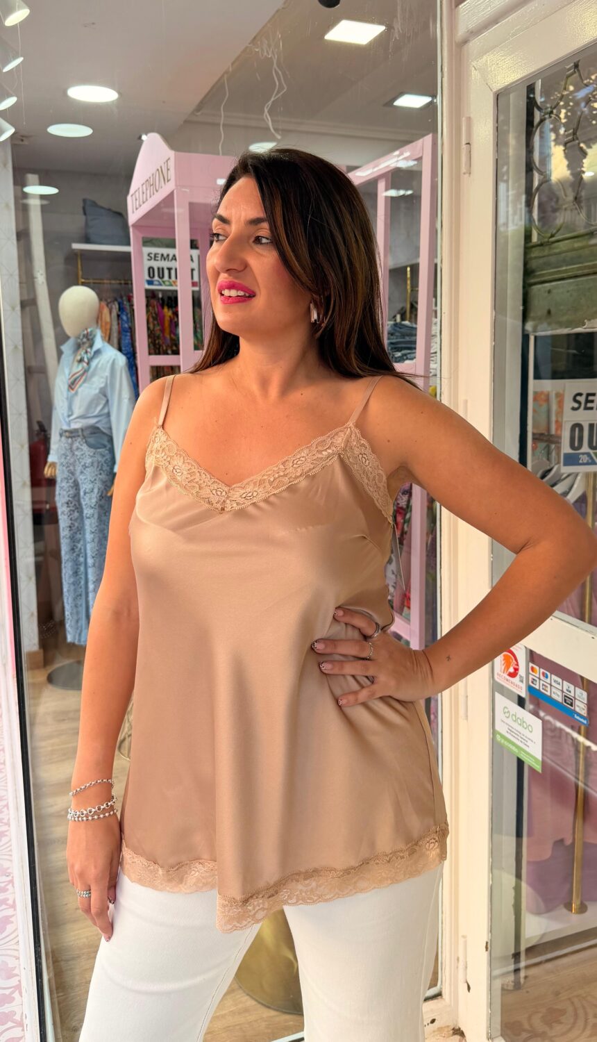Su corte fluido y su longitud tipo maxi la convierten en una pieza extremadamente versátil que sienta de maravilla con unos pantalones blancos para un contraste fresco y moderno o bajo una americana oscura para un estilo más nocturno y formal. Los tirantes finos completan este diseño minimalista pensado para la mujer que busca combinar la comodidad de una prenda ligera con el lujo de los detalles lenceros más cuidados.